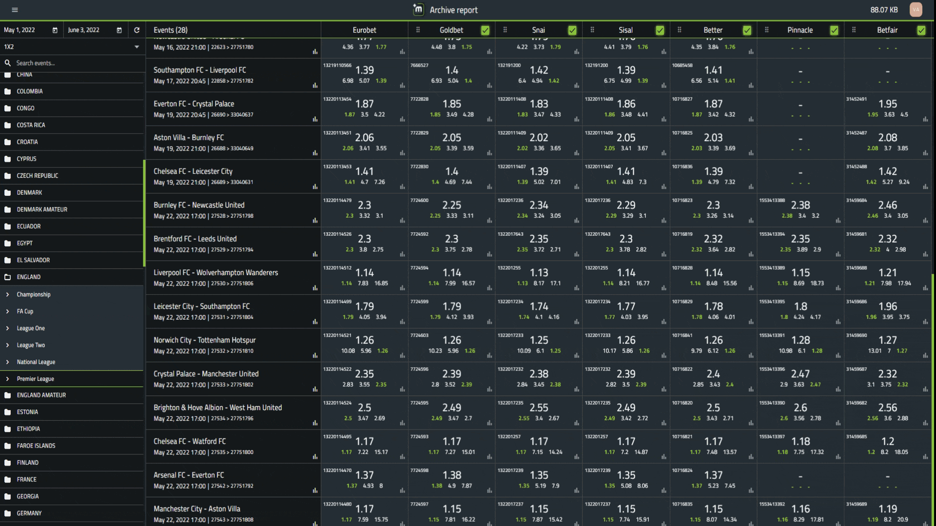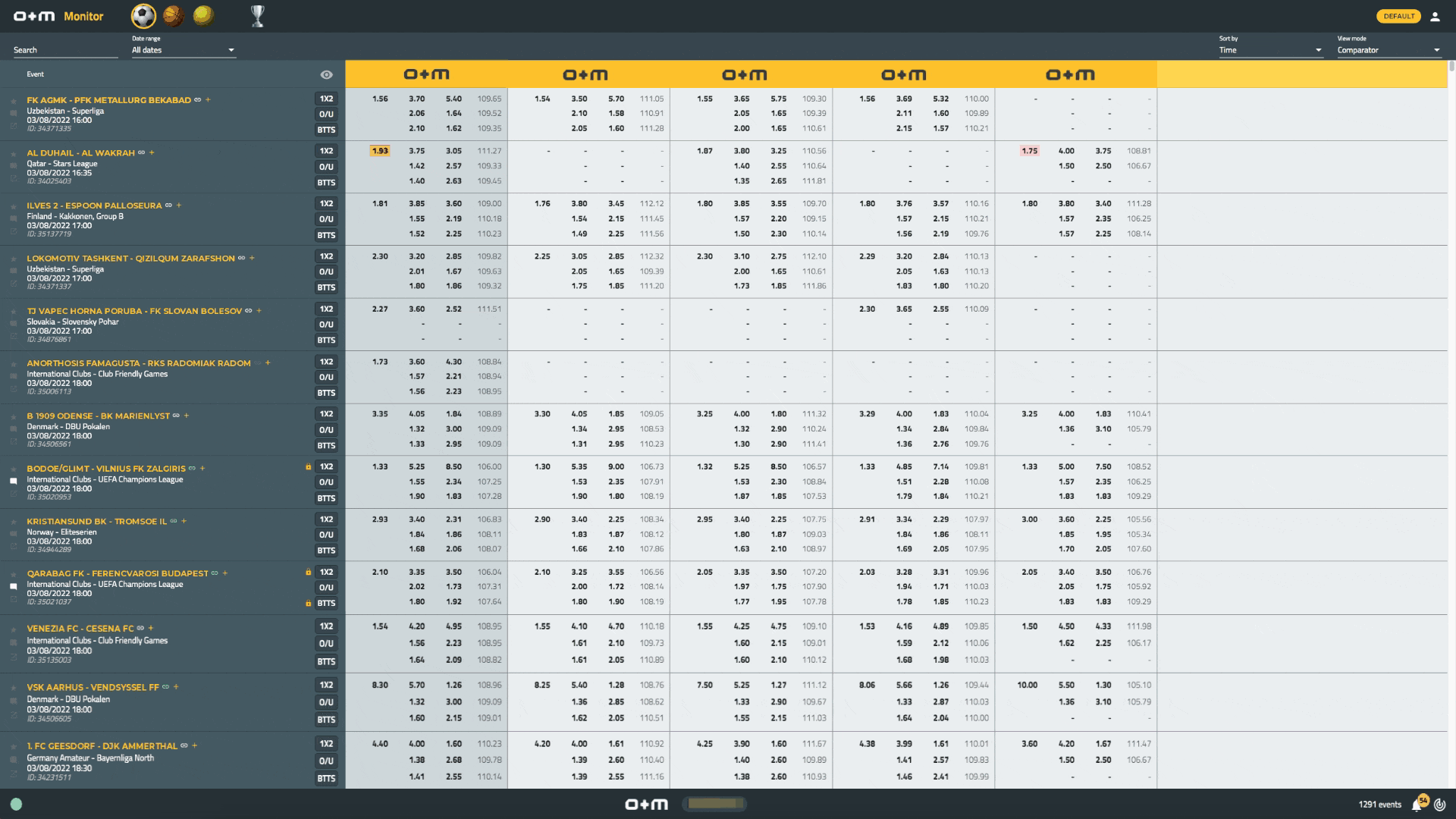 O+M Archive Report is a software based on an innovative algorithm, through which you can compare your historical odds with your competitors at any time interval.Our system will provide you with the required data that’s needed to position your odds with your competitors – from a single match to an entire season and be much more competitive.These reports are also created to significantly improve the future performance of the bookmaker by looking back to see what areas are working best.